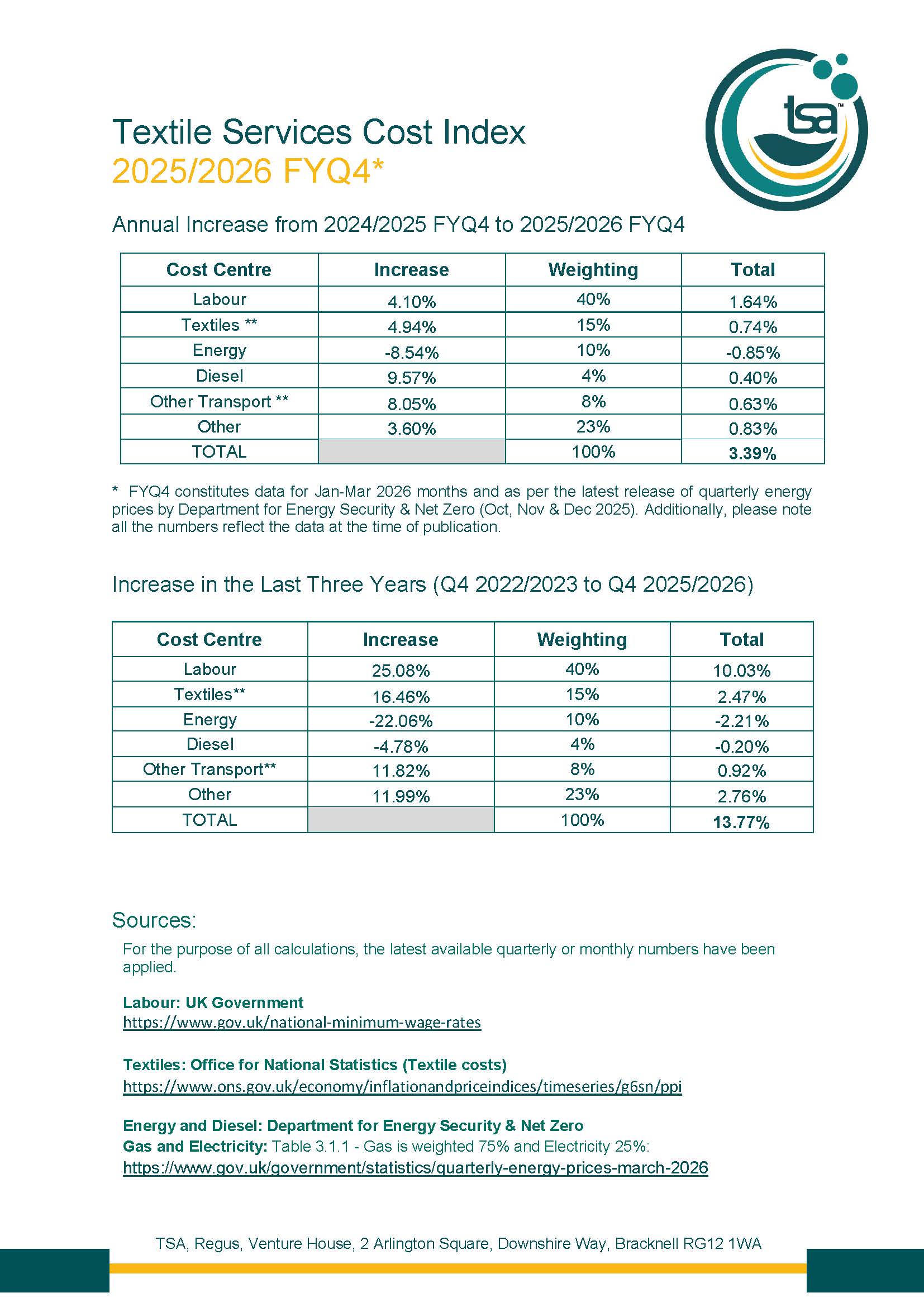 Textile Services Cost Index: 2025/2026 FYQ4